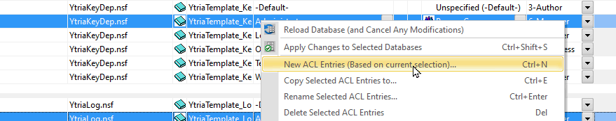 This will use the selected entry in each database as a "template" for the new ACL entry. Apply the ACL entry properties on each.