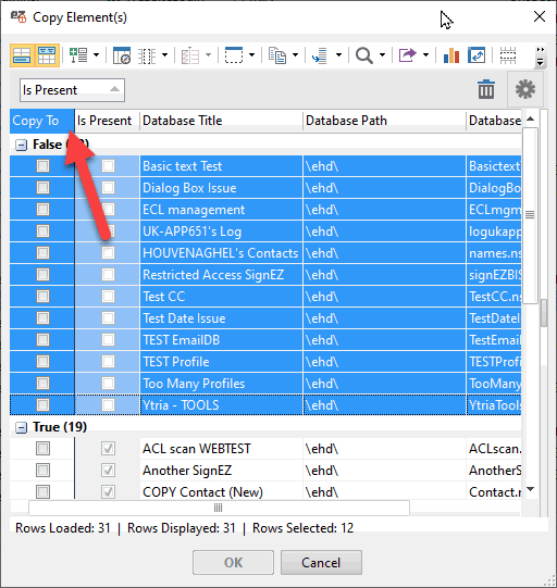 You will see a dialog that lists all the listed databases, allowing you to see if a database already has the entry or not (Is Present column).