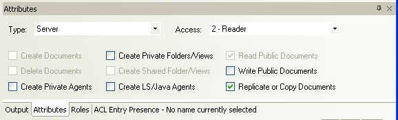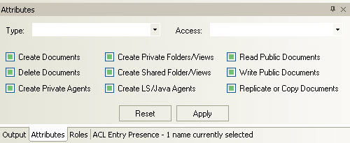 The options here correspond with those that appear in the Lotus Notes Access Control List window.