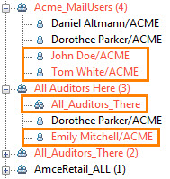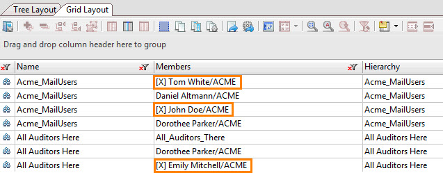 - Under the Tree Layout tab, color coding is applied to entries that aren't found in the NAB, as well as all the groups that contain them.