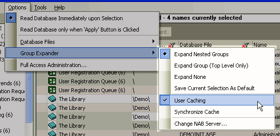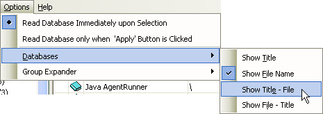 Read database immediately upon selection/Read database only when 'Apply' button is clicked: These options let you choose whether to automatically load detailed ACL information or wait until adatabase selection filterhas been activated.