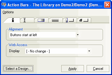 You can use this button to copy the properties of another action bar from a design element in any database. See Select a Design for more details.