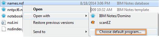 To do so, right-click on the nsf file in your Windows Explorer and select 'Choose default program'.