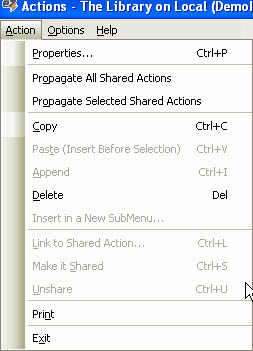 These actions are available from the Action menu or the contextual (right-click) menu.