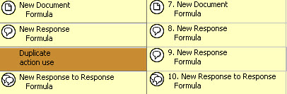 | NOTE | If a shared action is used several times in the same design element, a light brown line saying "Duplicate action use" is shown beneath the shared action.
