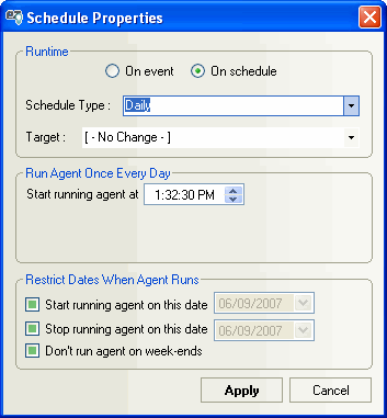 - Change Generic properties: The options here correspond with what you would find in the Domino Designer Agent Properties dialog box.