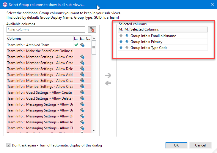 AdditionalGroupColumns: Select Group columns to show in all sub-views