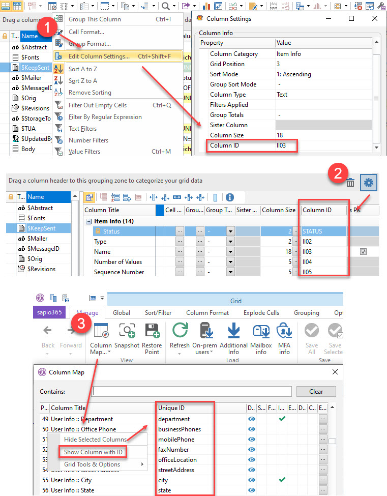 - The Column Map in sapio365 (right-click on any cell)