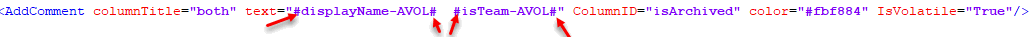 <AddComment columnTitle="My Group Type Phrase" text="This is another comment" ColumnID="displayName" color="#AAAAAA" IsVolatile="True" TextAlignment="Center" TextColor="#00FF00"/>