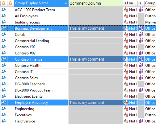 <AddComment Global="true" columnTitle="My Group Type" text="'#displayName' type is '#groupType#'" ColumnID="displayName" color="#AAAAAA" IsVolatile="True" TextAlignment="Center" extColor="#00FF00"/>