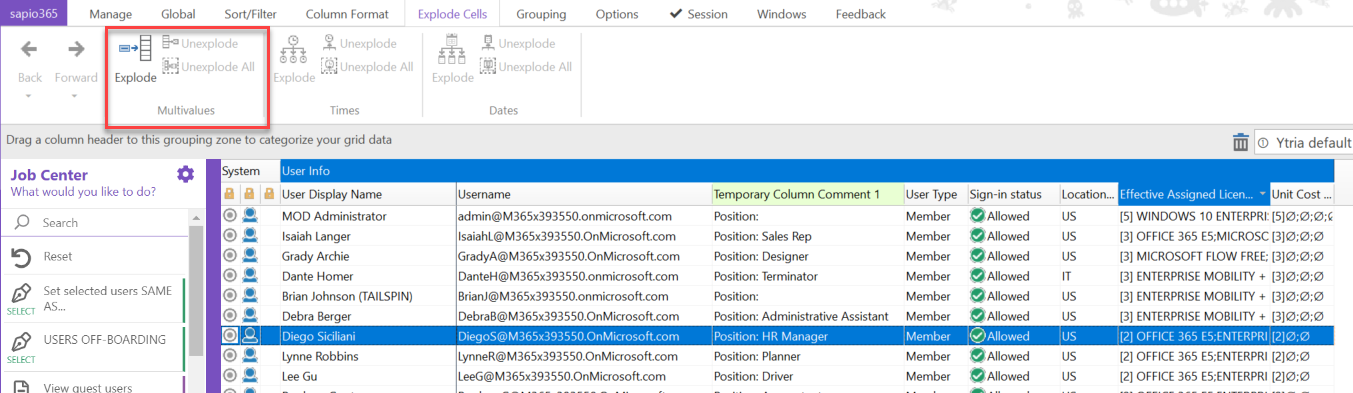 <ExplodeMultivalues ColumnID="assignedLicenses; ASSIGNEDSKUPARTNUMBER"/>