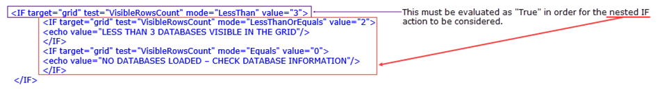 | NOTE | ALL IF actions will be tested unless they are nested and the higher IF condition does not take effect. |