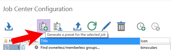 A generated preset is made from the content of the selected job.