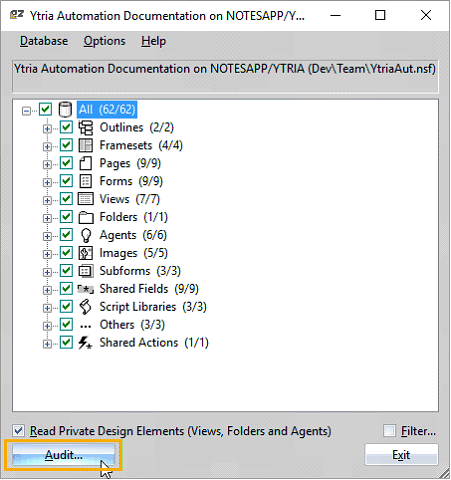 The Audit action emulates selection of the 'Audit…' button in designPropEZ.