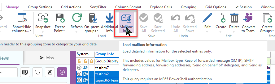 The SelectedGroupLoadMailboxInfo function automates the action of loading and showing Groups Mailbox Info of selected groups.