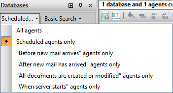 | Value | All Scheduled BeforeNewMailArrives AfterNewMailArrives AllDocumentsAreCreatedOrModified WhenServerStarts | The agent search filter setting - Required (See detailed description) |