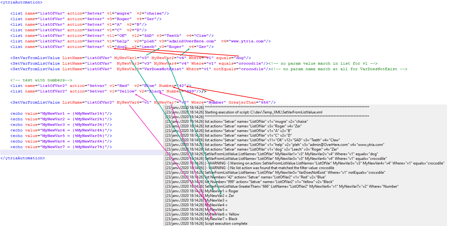 <SetVarFromListValue ListName="ListOfVar" MyNewVar5="VarDoesNotExist" Where="v1" notEquals="crocodile"/><!-- no param name march at all for VarDoesNotExist -->