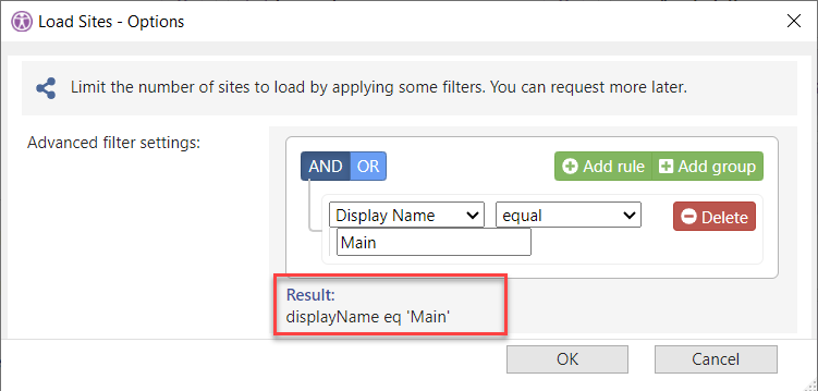 <ShowSites Filter="displayName eq 'Main'" FrameId="sites_1"/>