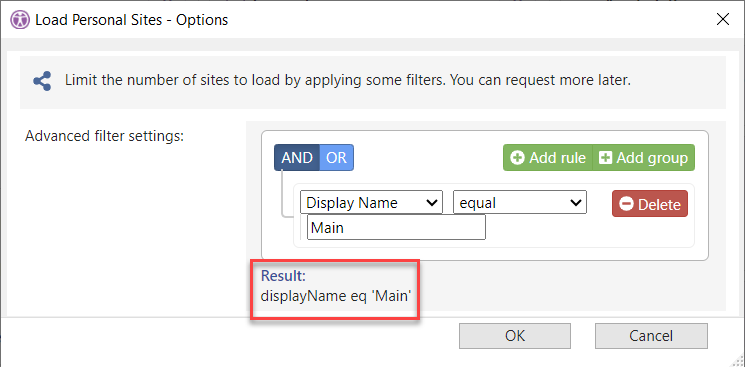 <ShowPersonalSites Filter="displayName eq 'Main'" FrameId="personalsites_1"/>