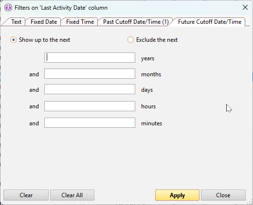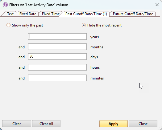 Cutoff-Date/Time Filters