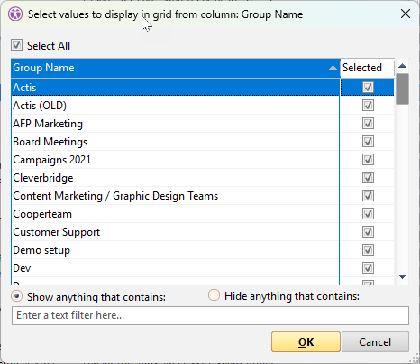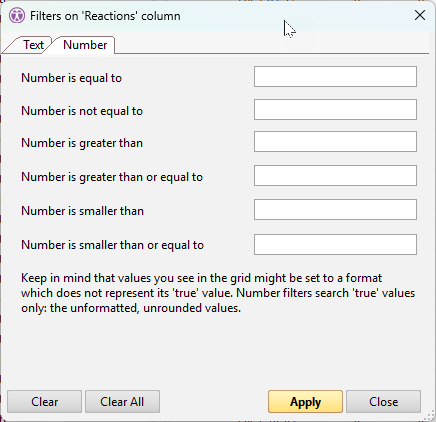 NOTE | The only way to filter a check box column is to use the Value filter set to either True or False (the default string renditions of check box fields when copying data into the Windows clipboard): |