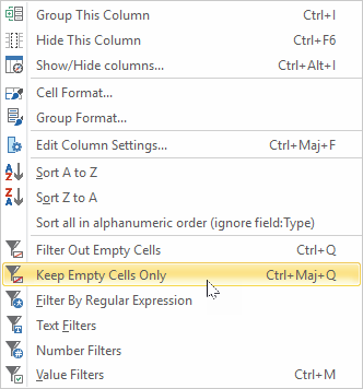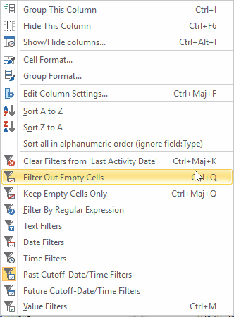 The right-click menu (on a column title)