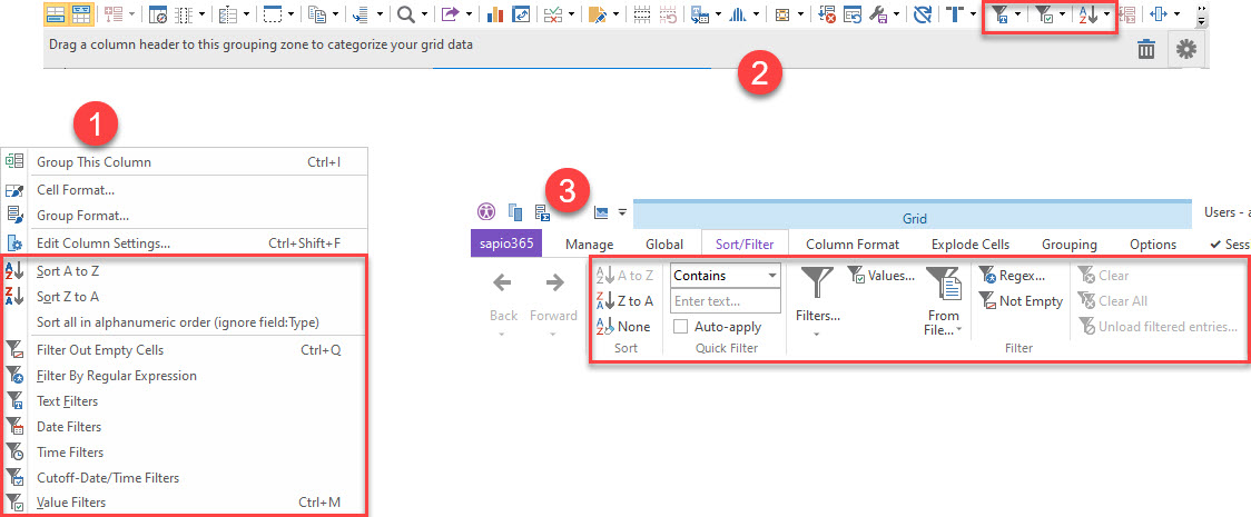 The Sort/Filter tab of the sapio365 ribbon