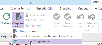 The SyncCloudOnPrem function automates the action of Sync Cloud/on-premises in Users /Groups Session for Hybrid environment.