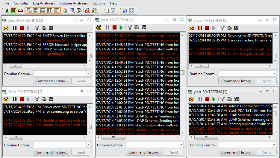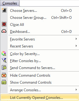 Tile Horizontally: Tiles the selected consoles horizontally.