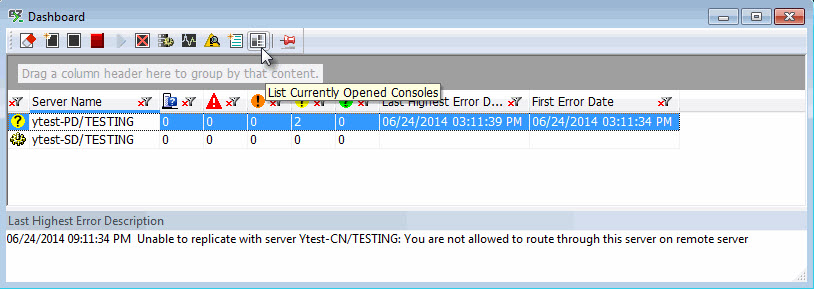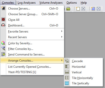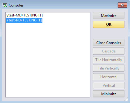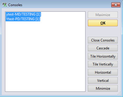 | NOTE | The blue icon shows the current Consoles state. 'Tile Vertically' is selected by default. |