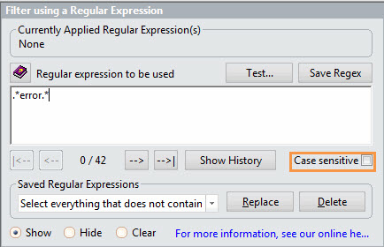 Clear: Clears the Regex filter.