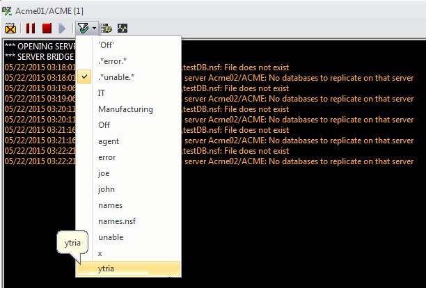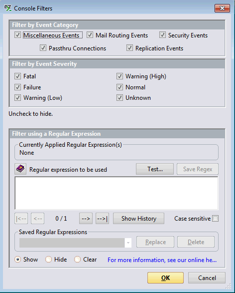 The Console Filters options window will be opened after you have clicked on the Filter icon.