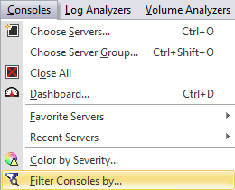 Or use the Filter Consoles by command in the Consoles menu: