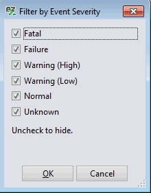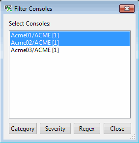 - The Severity button filters any selected consoles by Event Severity.