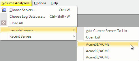 - Use your Favorite Servers list in the Volume Analyzers menu.