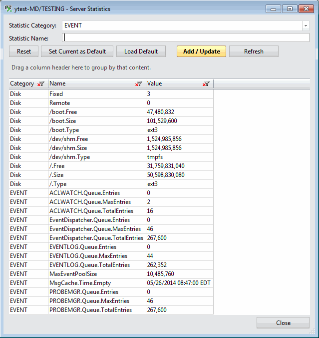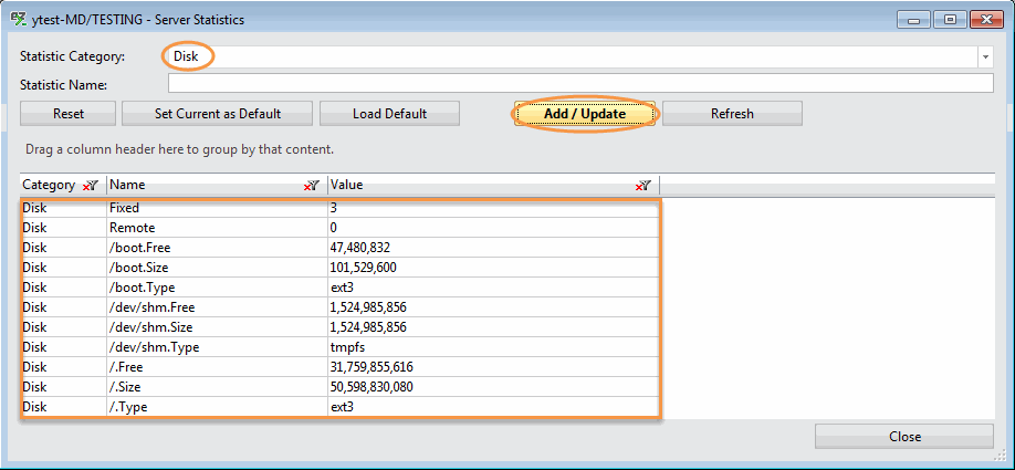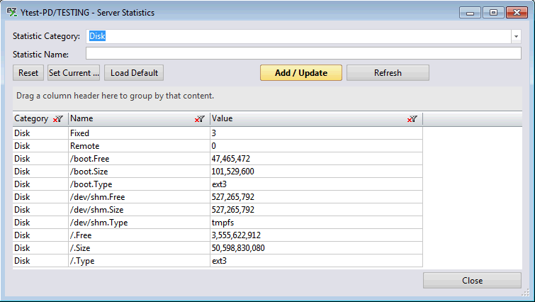 | TIP | If you leave your 'Stat Name' blank and click 'Add Value(s)', all the server statistics selected will be displayed in the grid. |