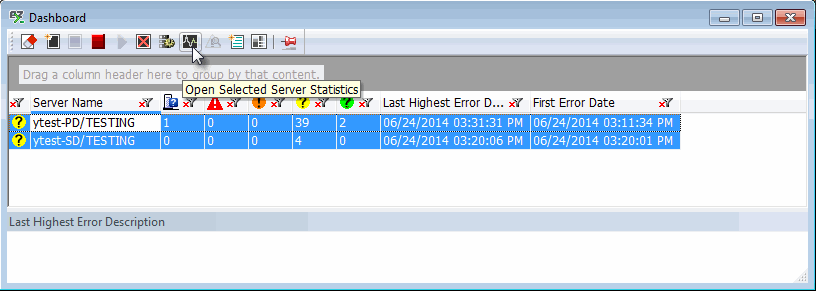 Use the toolbar's Dashboard icon to open the selected servers' statistics.