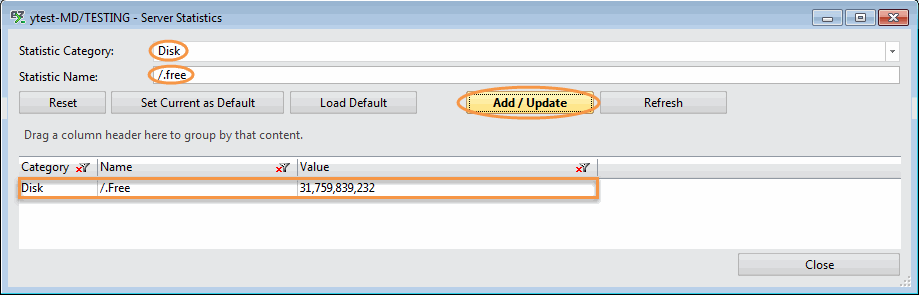 - Set Current as Default: sets the current added values as default for all the Server Statistics windows.