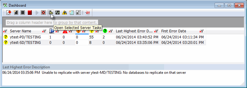 Use the toolbar's Dashboard icon to open the selected server(s) tasks.