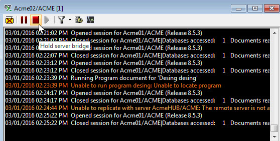 While holding, the Server Bridge stops every request from consoleEZ to the Domino server.