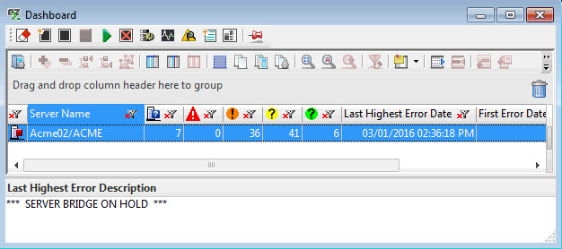 The Dashboard receives no information from the Server Bridge when 'Hold Server Bridge' is activated.