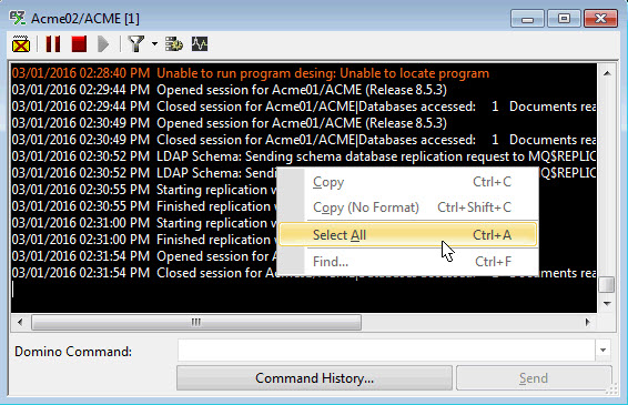 - Select All (Ctrl + A): Selects all the lines in the console.