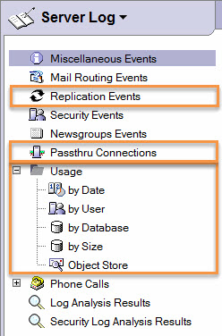 Log.nsf categories in IBM Notes.