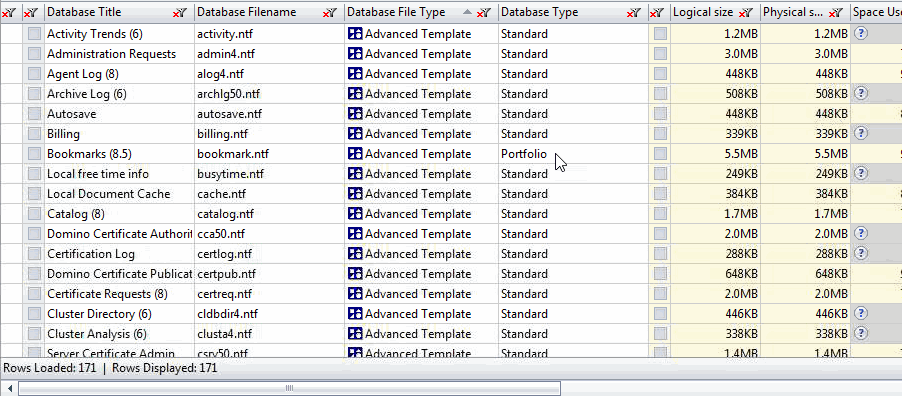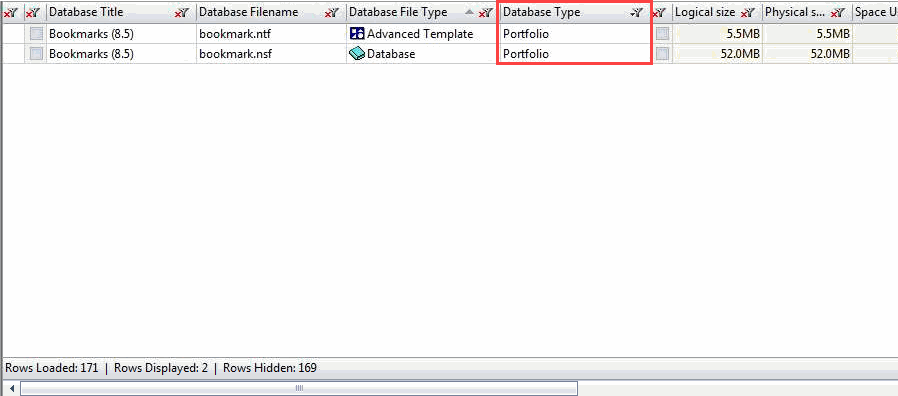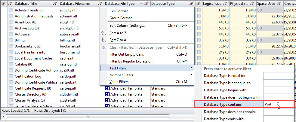 When a text filter is applied to the column Database Type, the results are reflected in the entire grid.
