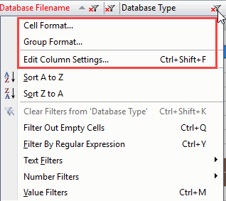 | NOTE | Some columns, such as those in the 'Edit Column Settings...' dialog grid, will have multiple cell types within the same column. In these cases, all relevant format preferences will be available from it's column header. |