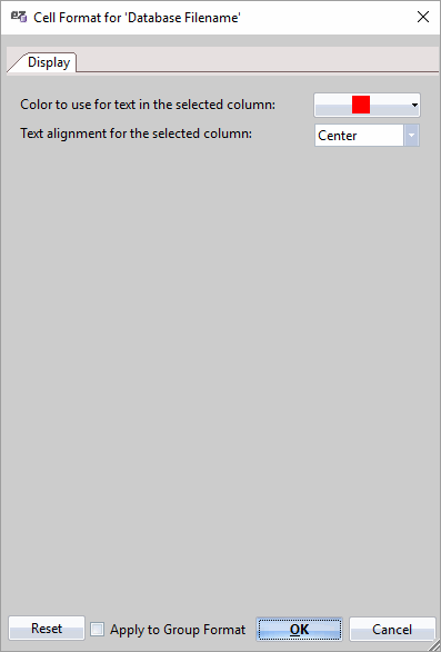 Text columns offer the 'Display' family of preferences, letting you set the color and alignment of the text within the column.