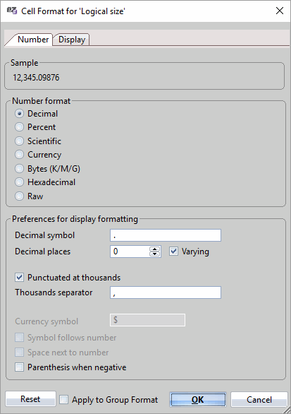 For more information see the 'Number' format preferences page.