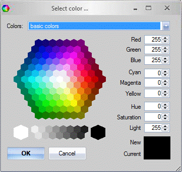 Clicking the setting 'Custom Color…' enables a larger selection of colors and a variety of selection mechanics.