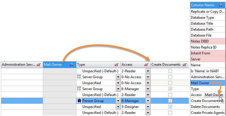 Therefore in the grid, 'Mail Owner' will be repositioned to the right of 'Access'.