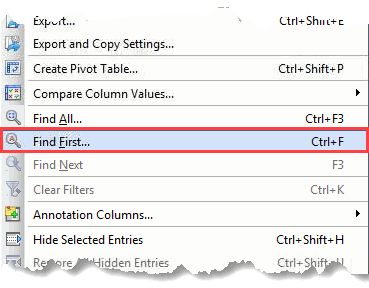 Activating the function will open the 'Find First' dialog.